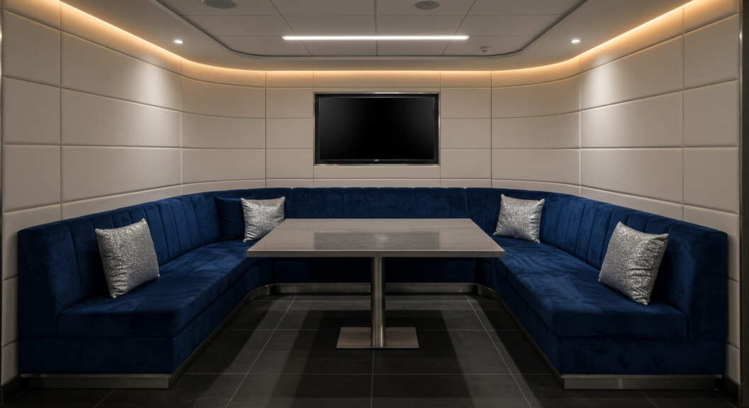 6. 편안하고 안락한 고급 쇼파와 룸크기에 맞게 인체공학적으로 제작된 테이블이 있어 편안한 라운지 분위기를 제공합니다.
